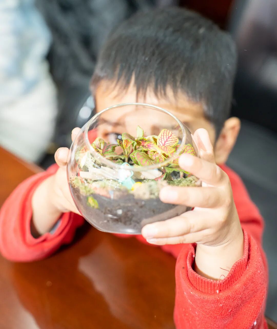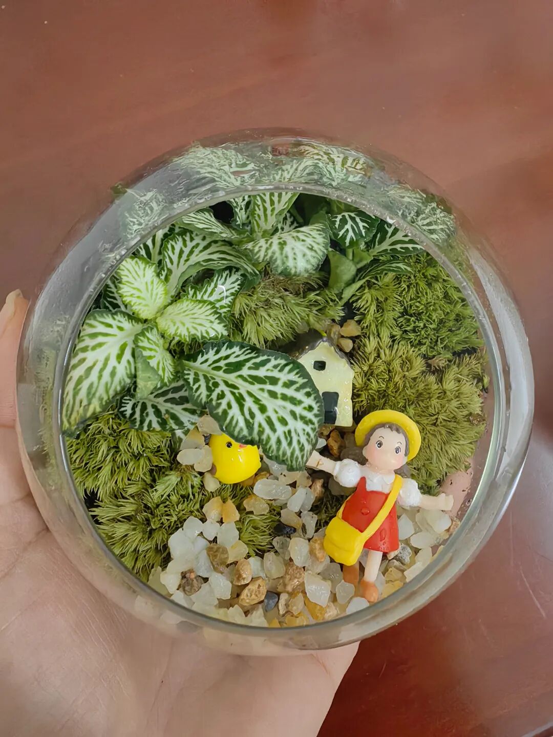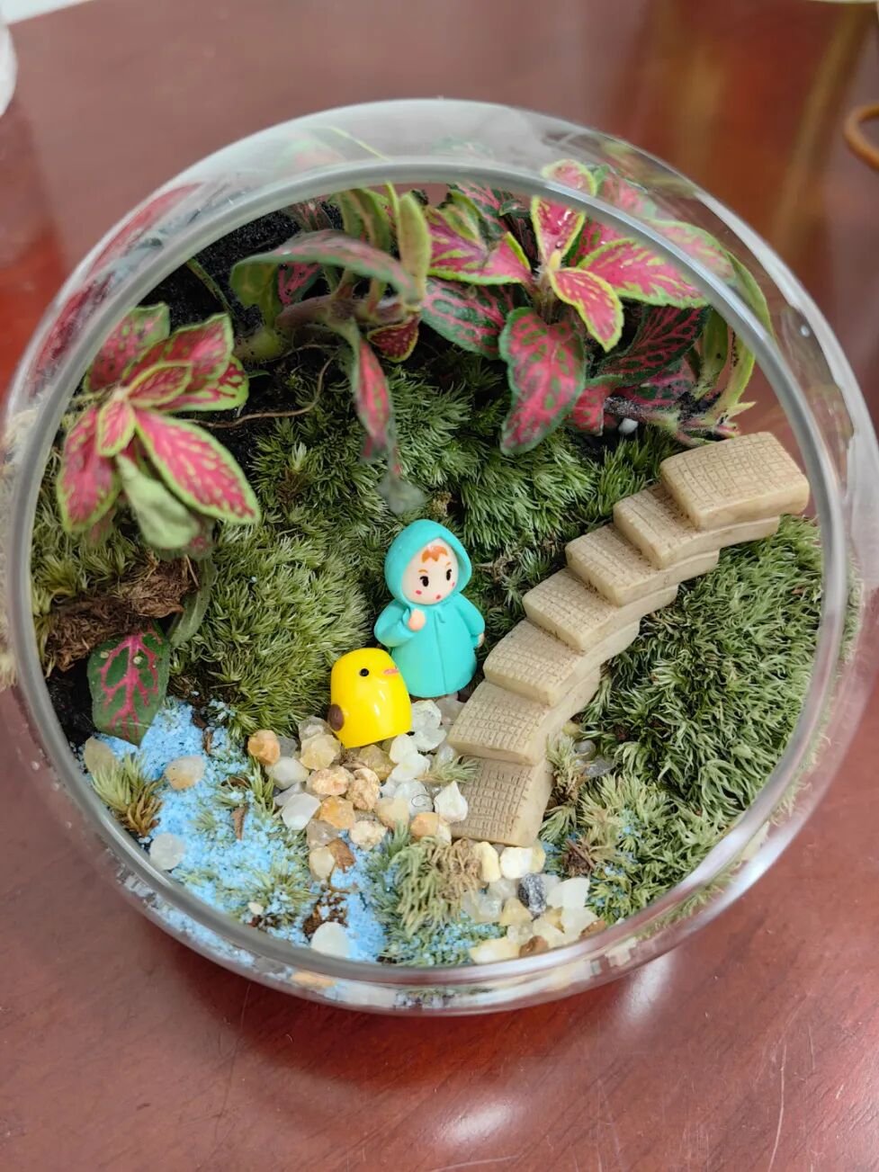 随后,县总工会的老师为大家详细讲解了微景观的制作方法。小朋友们顿时兴致勃勃,纷纷动手实践起来。他们巧妙地将绿色植物与小摆件搭配在一起,精心打造出一个个充满生机的微型世界。在这些微景观中,每一片绿叶都仿佛象征着希望,每一粒沙石都承载着深深的敬意。孩子们专注的眼神,仿佛在与历史进行着一场深刻的对话,在感悟伟人精神力量的同时,红色基因也在他们心中悄然生根发芽。