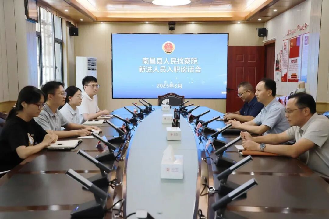 为帮助新进人员更好更快地适应检察工作,进一步提升专业素养和职业能力,2025年8月27日下午,南昌县人民检察院召开2025年度新进人员入职谈话会。会议由党组成员、政治部主任黄辉平主持,院党组书记、检察长刘龙军参加会议并讲话。