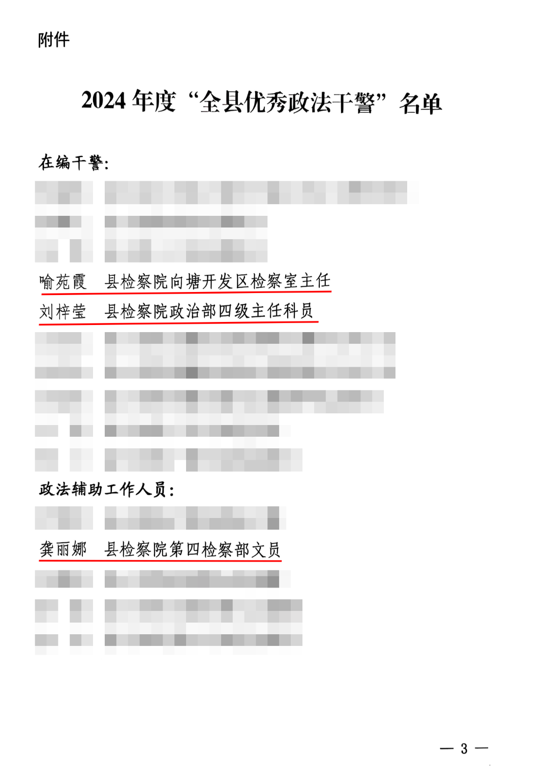 南昌县人民检察院喻苑霞、刘梓莹、龚丽娜获评2024年度“全县优秀政法干警”。