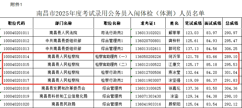 根据《江西省2025年度考试录用公务员公告》及有关规定,现将南昌市2025年度考试录用公务员入闱体检(体测)人员名单及体检(体测)有关事项予以公告。