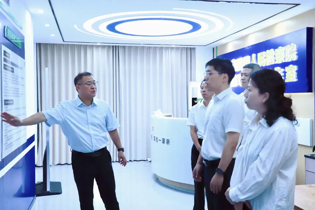 调研中,陈勇一行走进南昌县人民检察院12309检察服务中心、案件管理中心、拥军检察工作室等功能区,实地察看检察机关在便民服务、司法建设等方面的具体实践,直观感受南昌县人民检察院立足检察职能服务群众的具体举措。