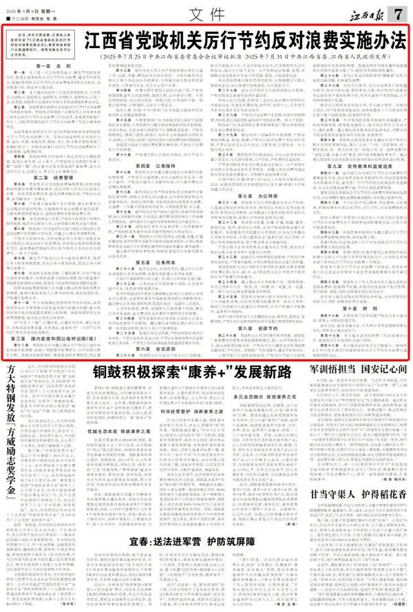近日,中共江西省委、江西省人民政府印发了《江西省党政机关厉行节约反对浪费实施办法》,要求各地各部门认真遵照执行。现将实施办法予以公开发布。