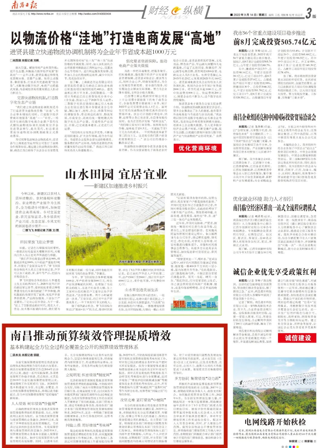 9月14日,《南昌日报》以“南昌推动预算绩效管理提质增效——基本构建起全方位全过程全覆盖全公开的预算绩效管理体系”为题,大篇幅报道我局预算绩效管理工作有关情况,以下是报道全文: