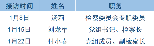 为深入贯彻习近平法治思想,践行新时代检察机关以人民为中心的发展思想,进一步密切检察机关同人民群众的联系,提升12309检察服务中心服务质效,扎实做好检察长接访工作,推动案结事了人和,南昌县人民检察院坚持开展12309检察服务中心“检察长接访日”活动,现将本院2025年1月“检察长接访日”接访安排公告如下:
