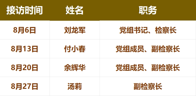 为深入贯彻习近平法治思想,践行新时代检察机关以人民为中心的发展思想,进一步密切检察机关同人民群众的联系,提升12309检察服务中心服务质效,扎实做好检察长接访工作,推动案结事了人和,南昌县人民检察院坚持开展12309检察服务中心“检察长接访日”活动,现将本院2025年8月“检察长接访日”接访安排公告如下: